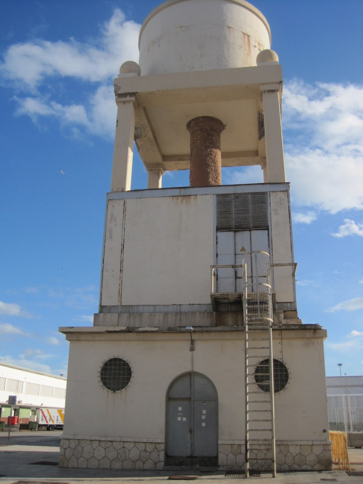 El segundo depósito, que hemos solicitiado proteger, se encuentra en la zona de Pescadería y, aunque por ahora no se contempla su derribo, su abandono empieza a pasarle factura y mucho nos tememos que tarde o temprano la Autoridad Portuaria lo demolerá para evitarse problemas.